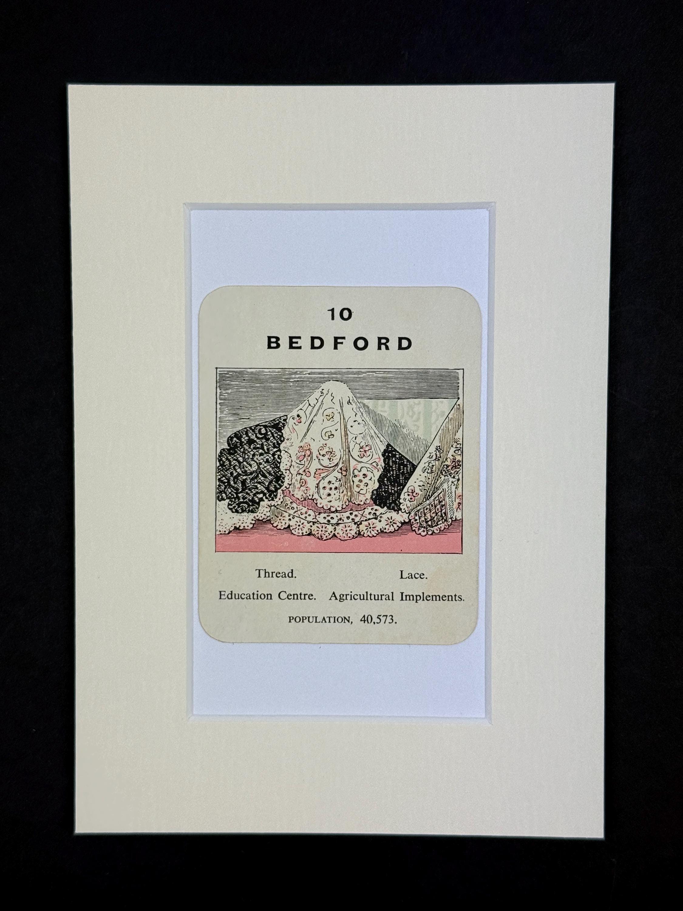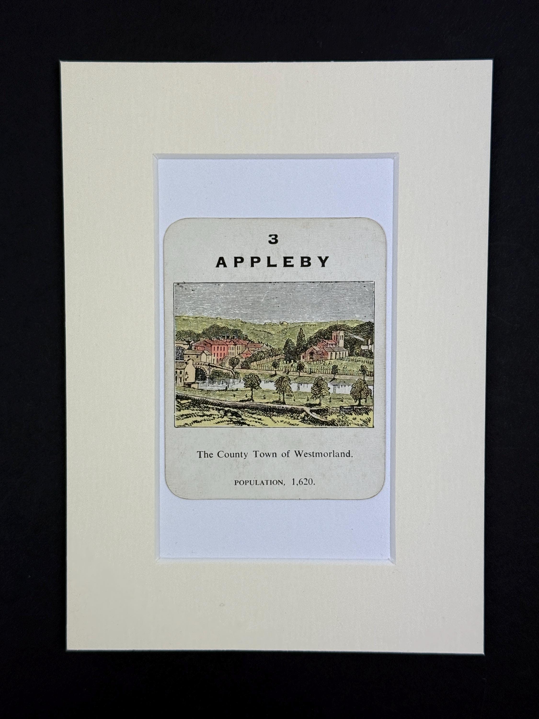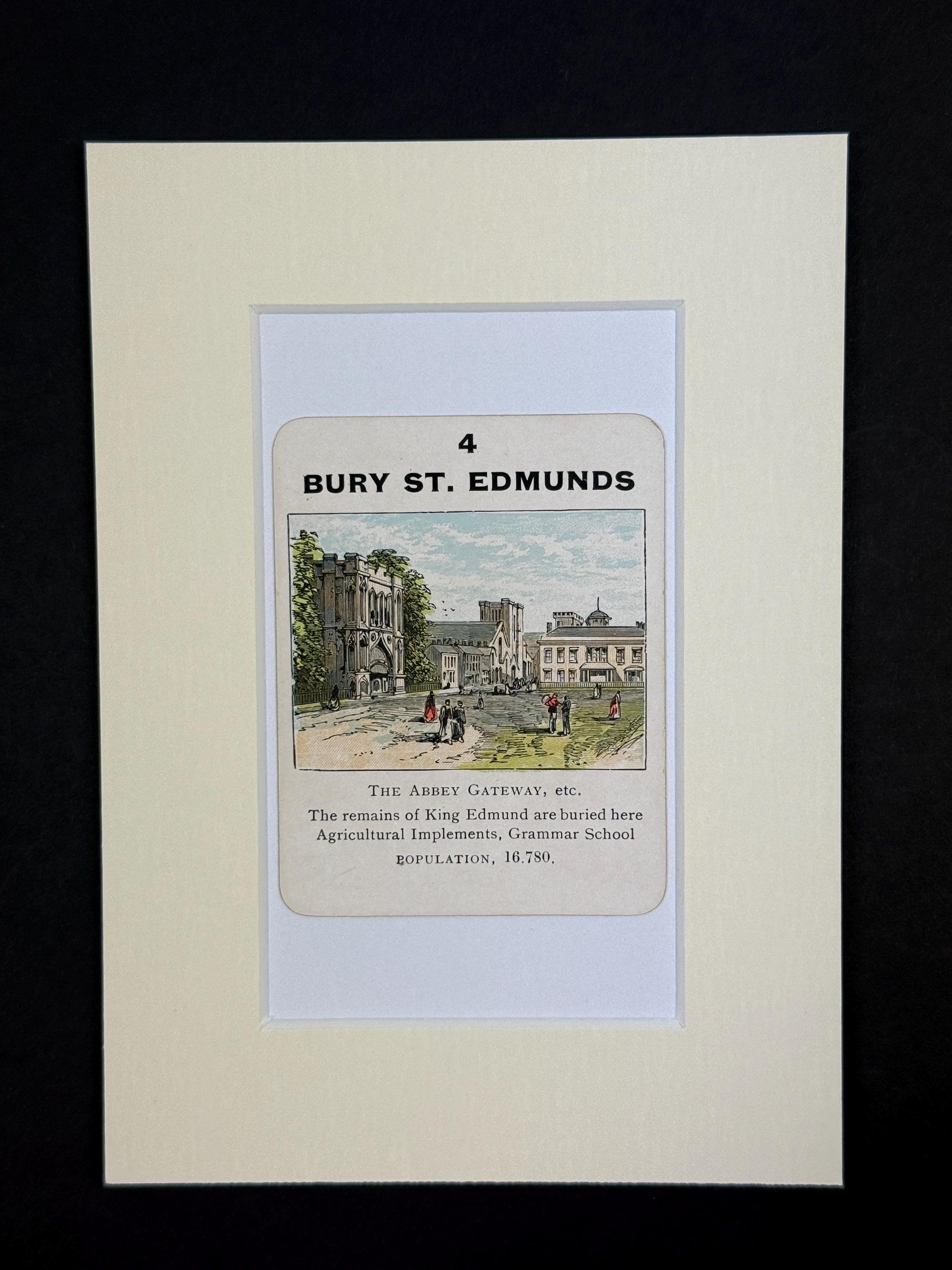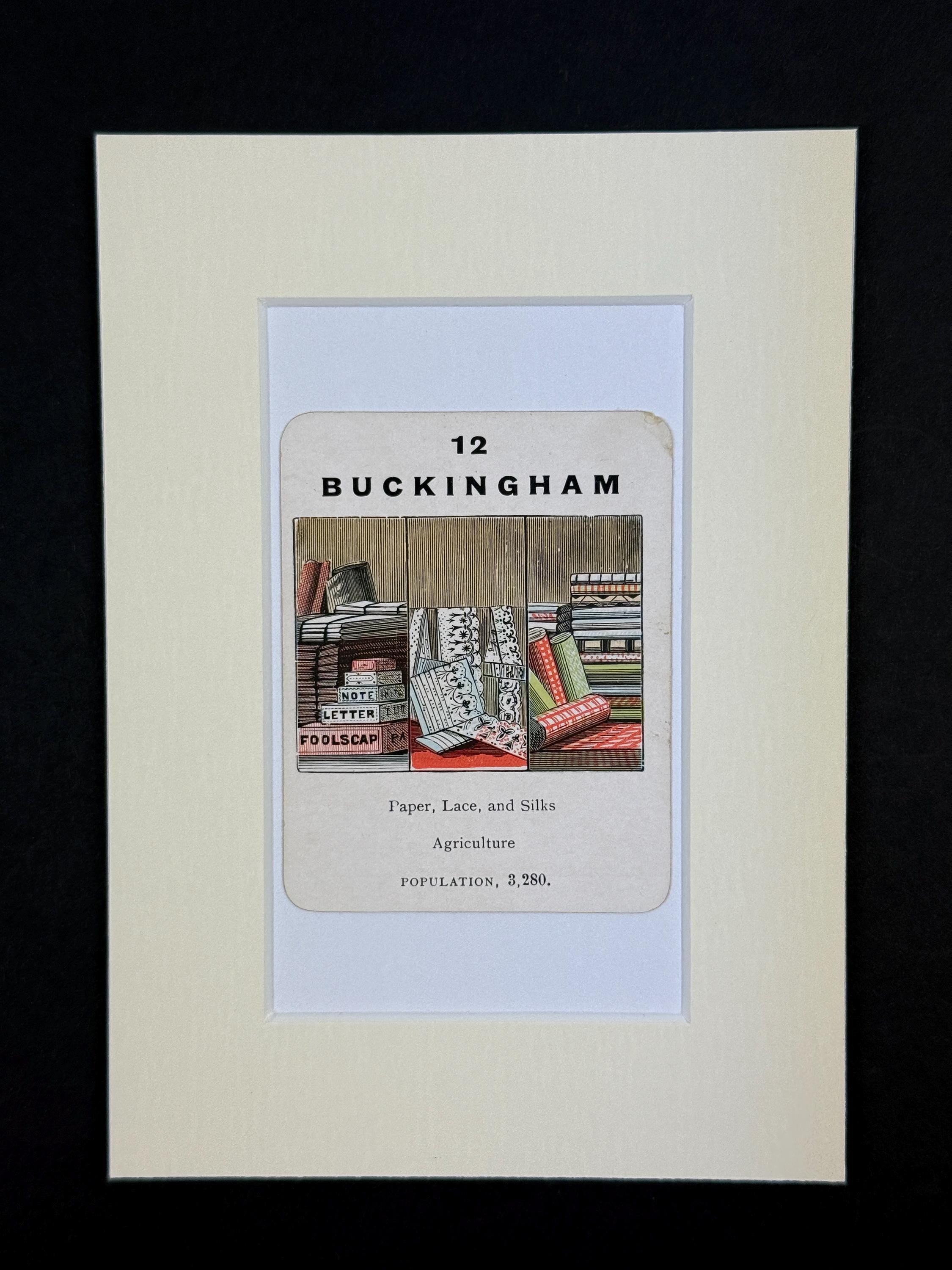 Original Vintage Counties of England Playing Card - mounted and ready to frame (frame not supplied but comes packaged in a protective cello bag). Ivory mount measures 7x5 inches.