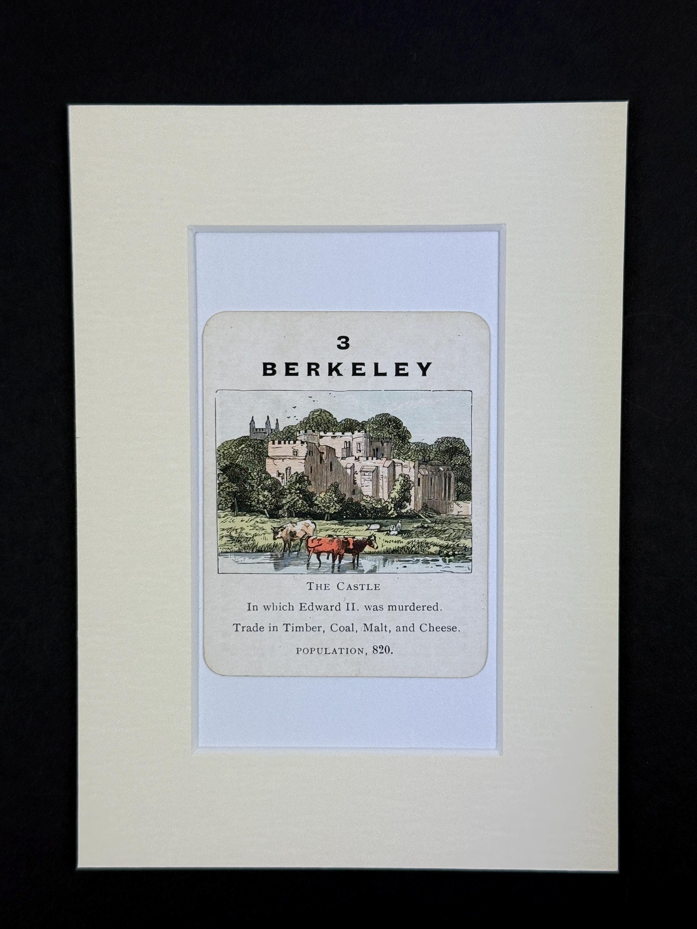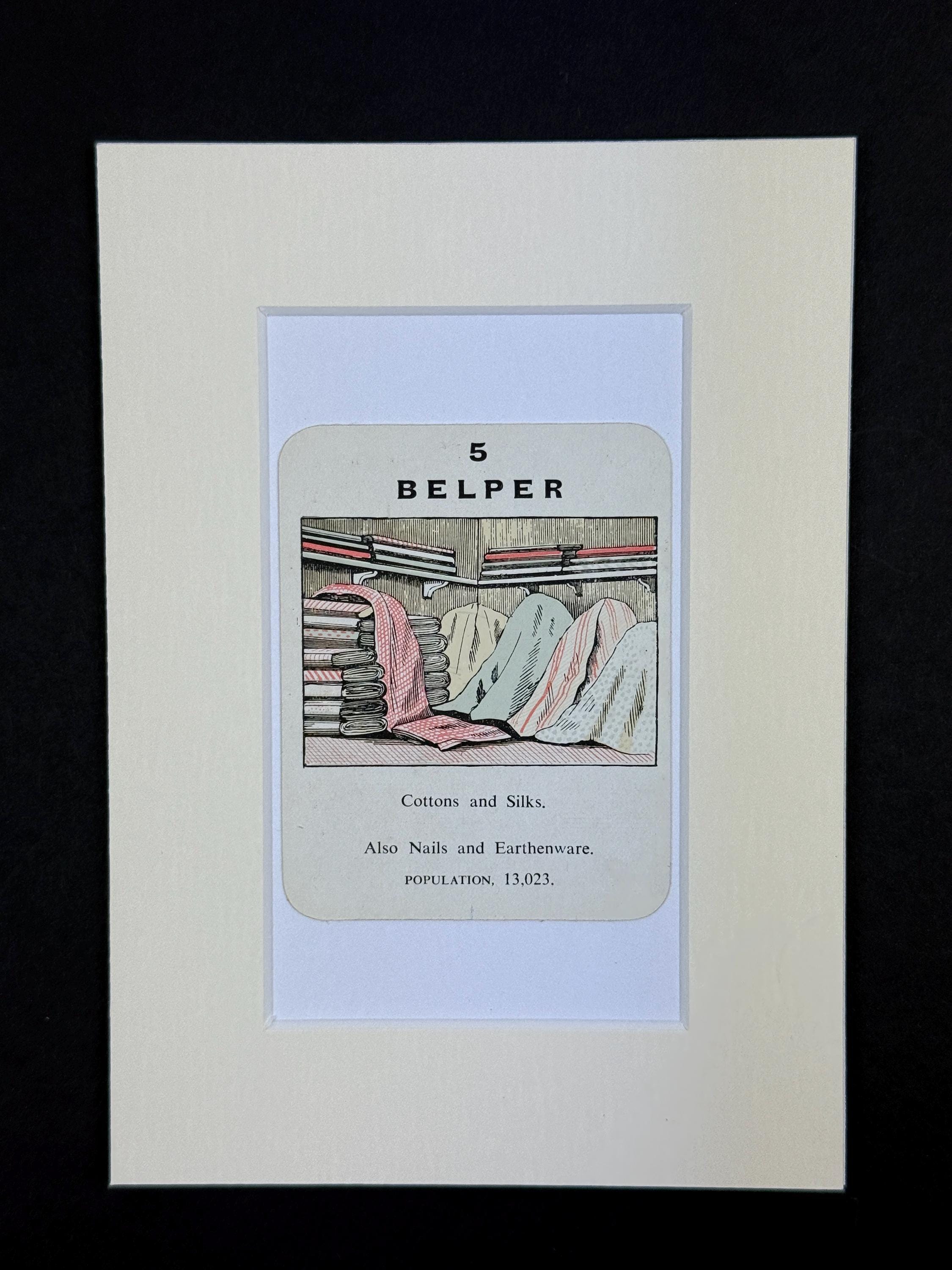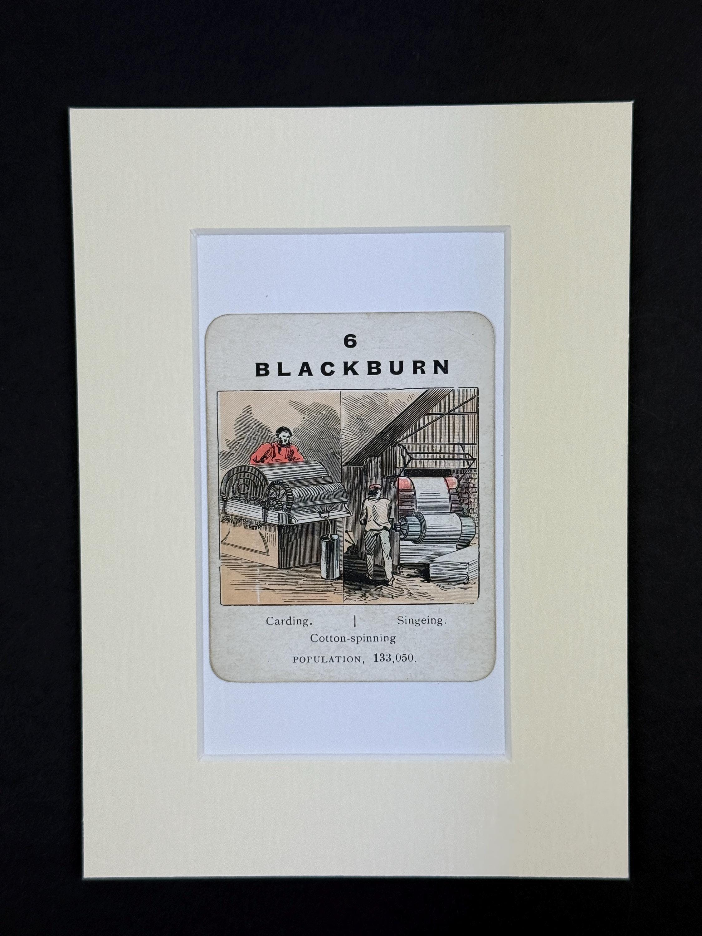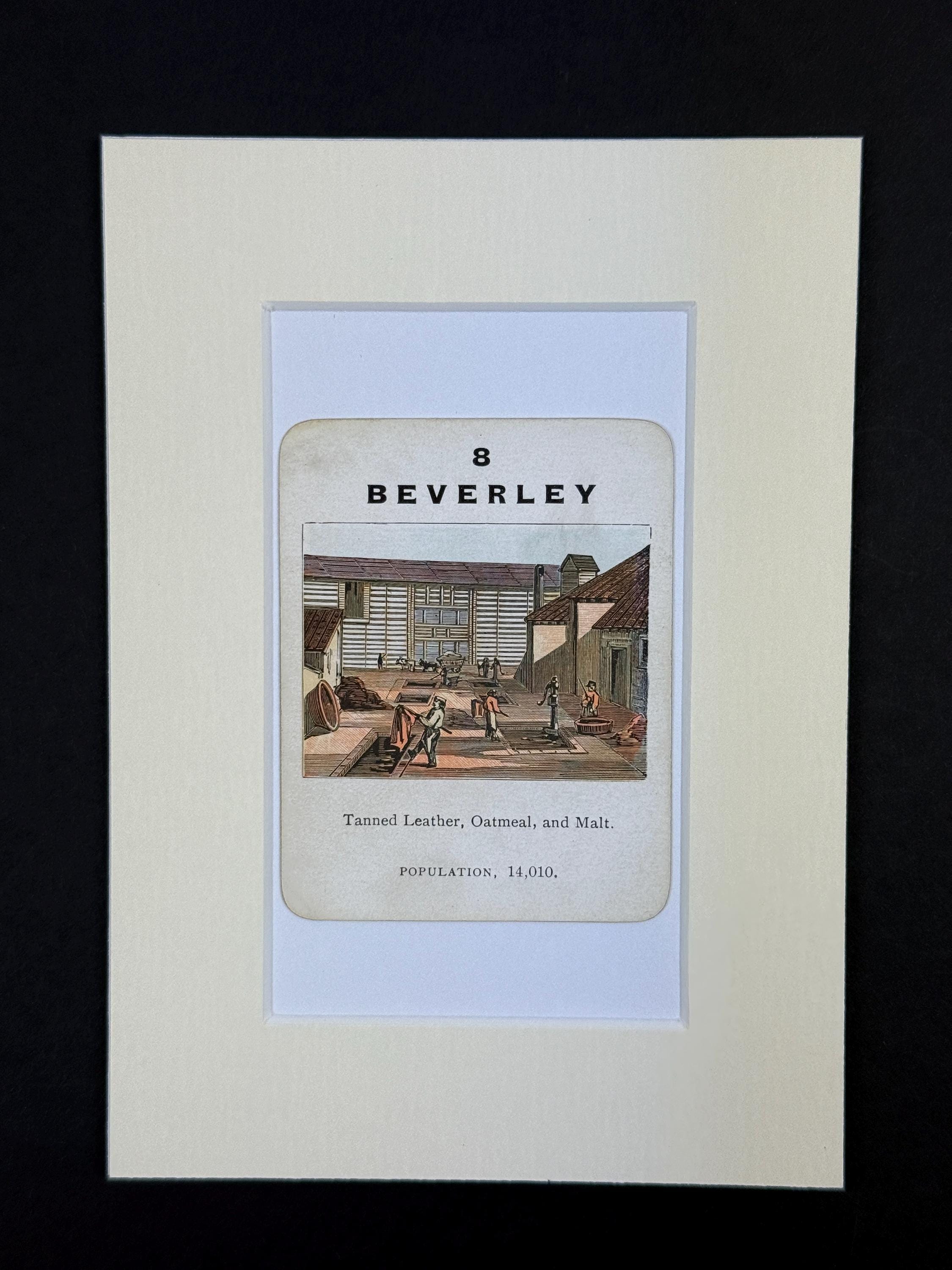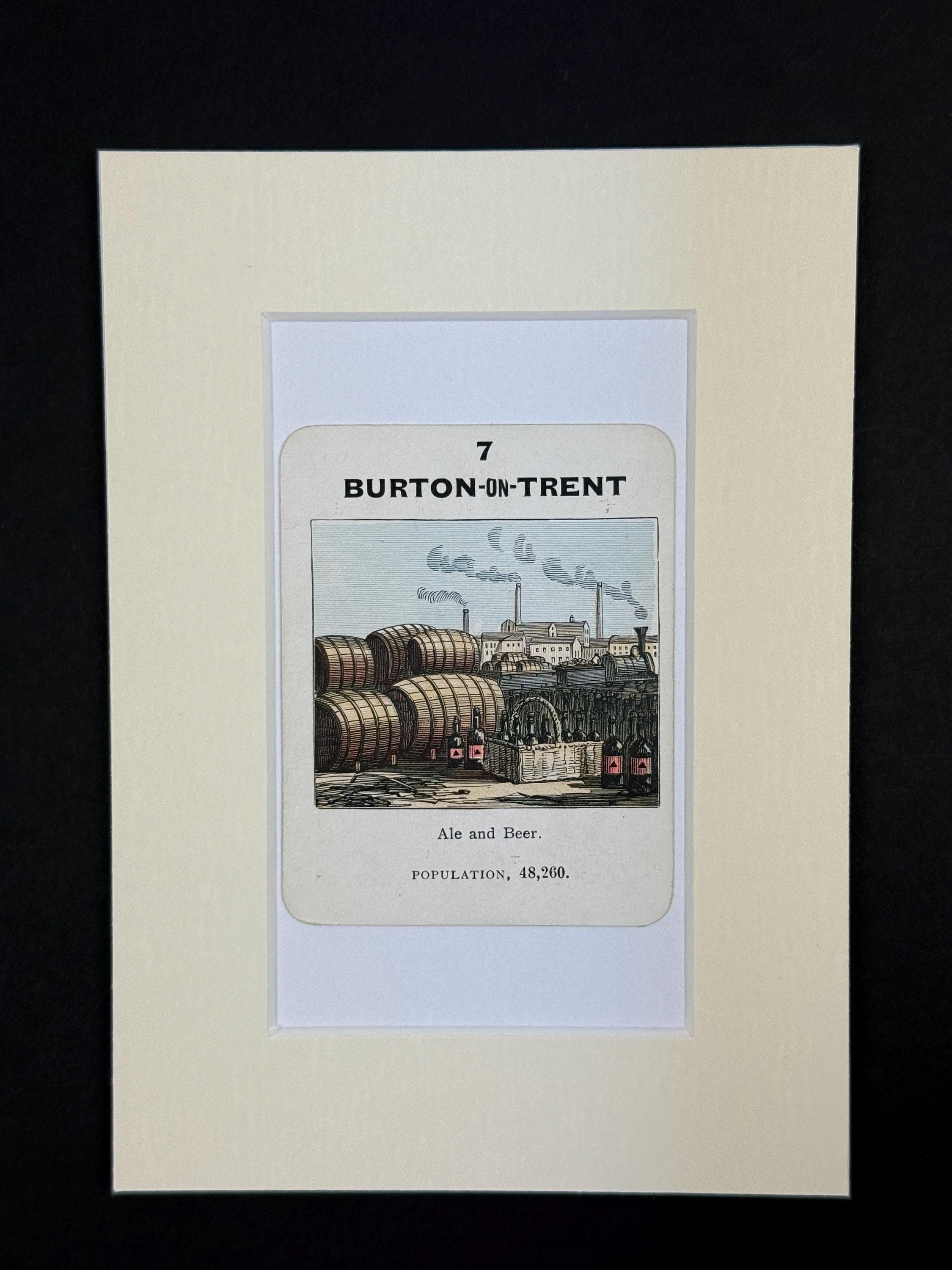 Original Vintage Counties of England Playing Card - mounted and ready to frame (frame not supplied but comes packaged in a protective cello bag). Ivory mount measures 7x5 inches.