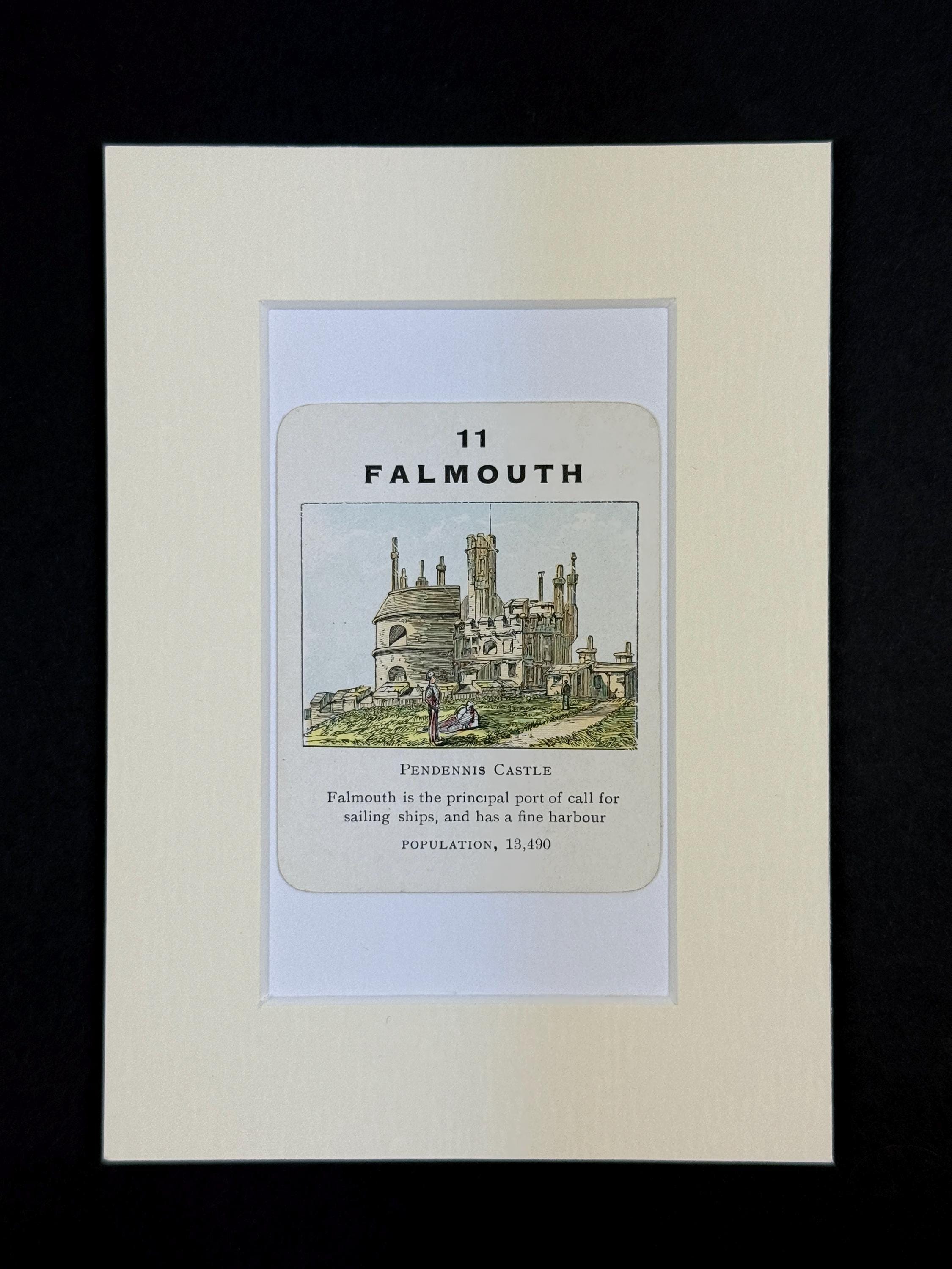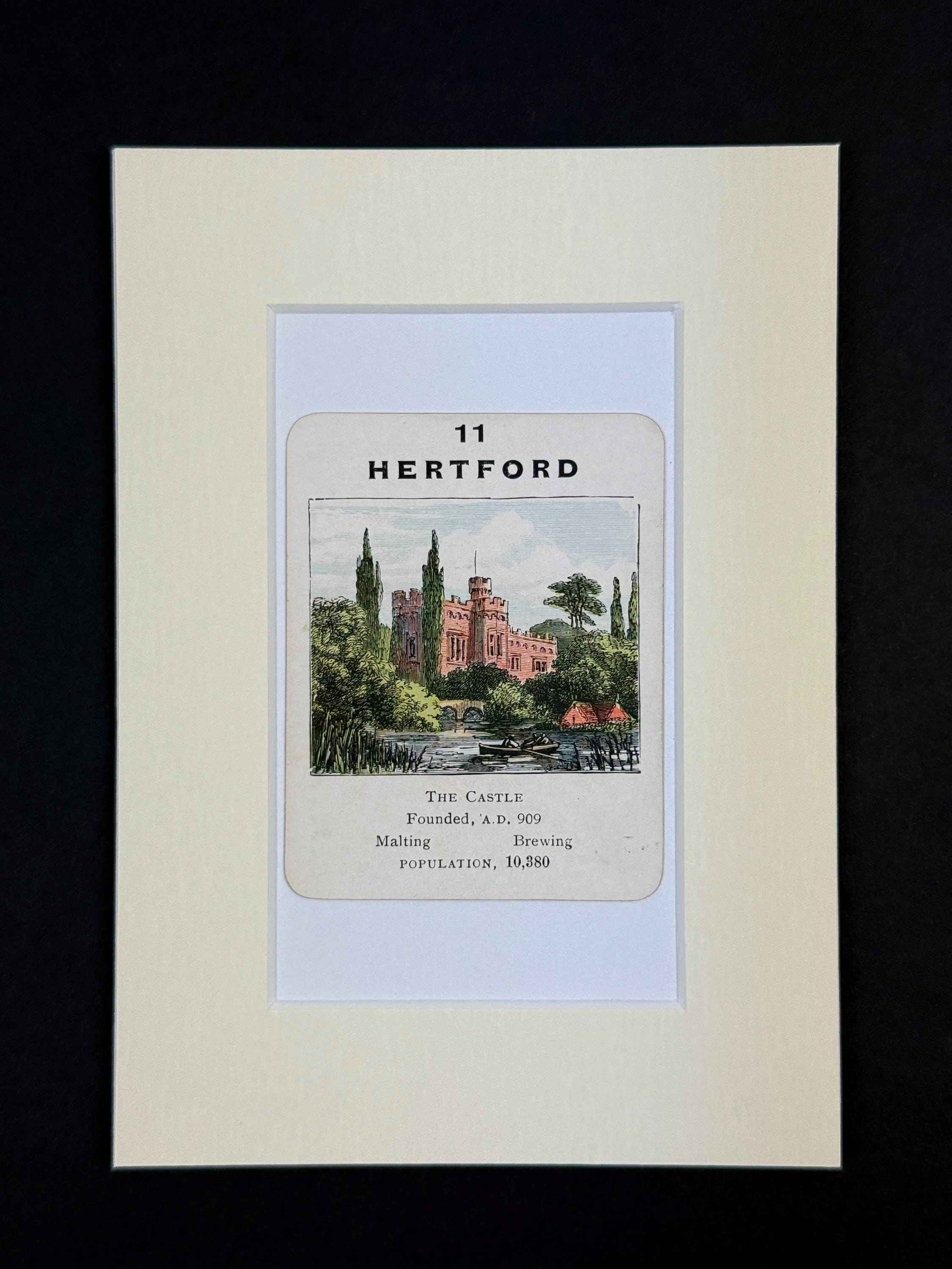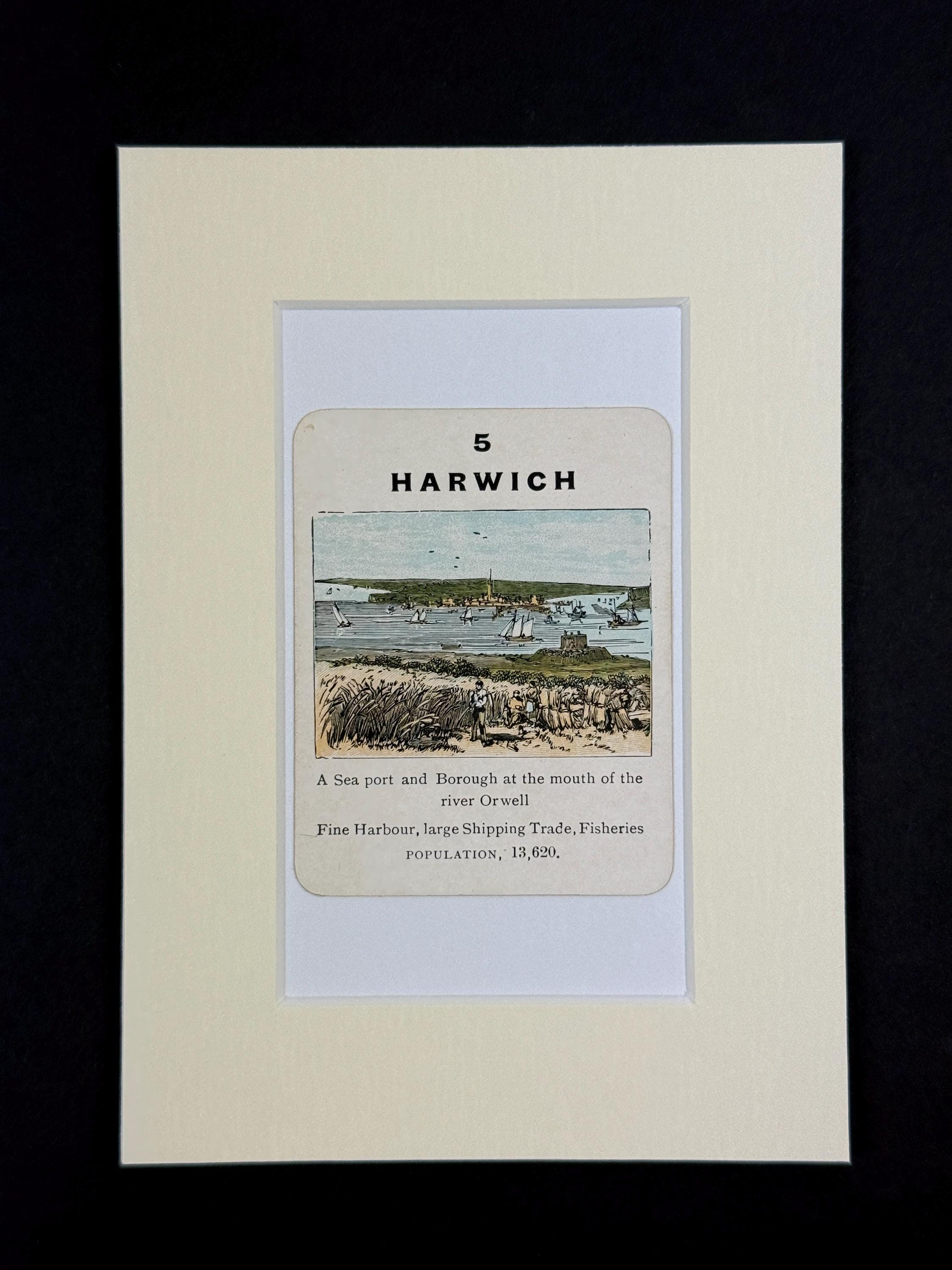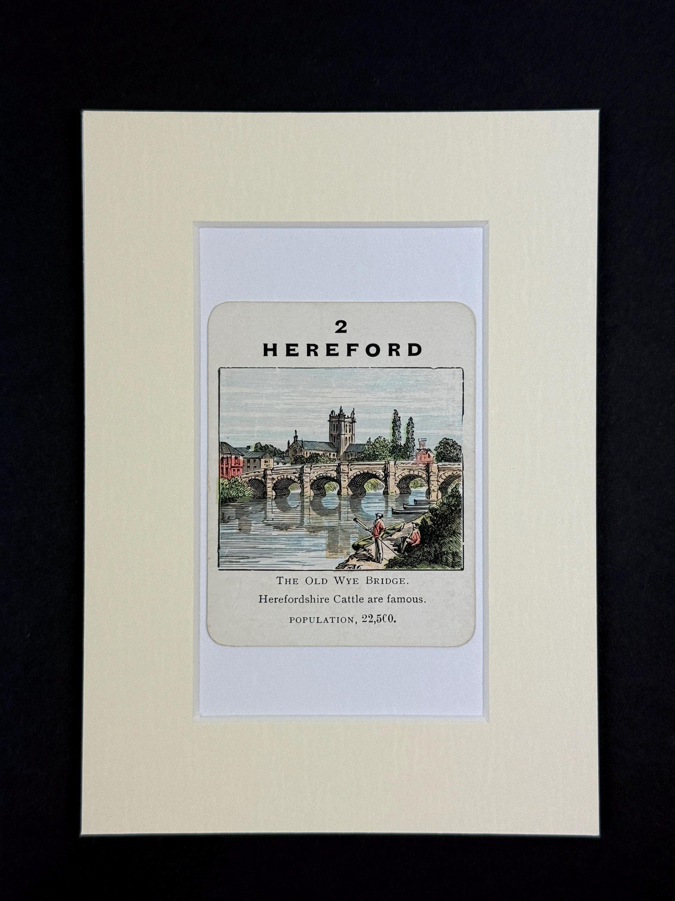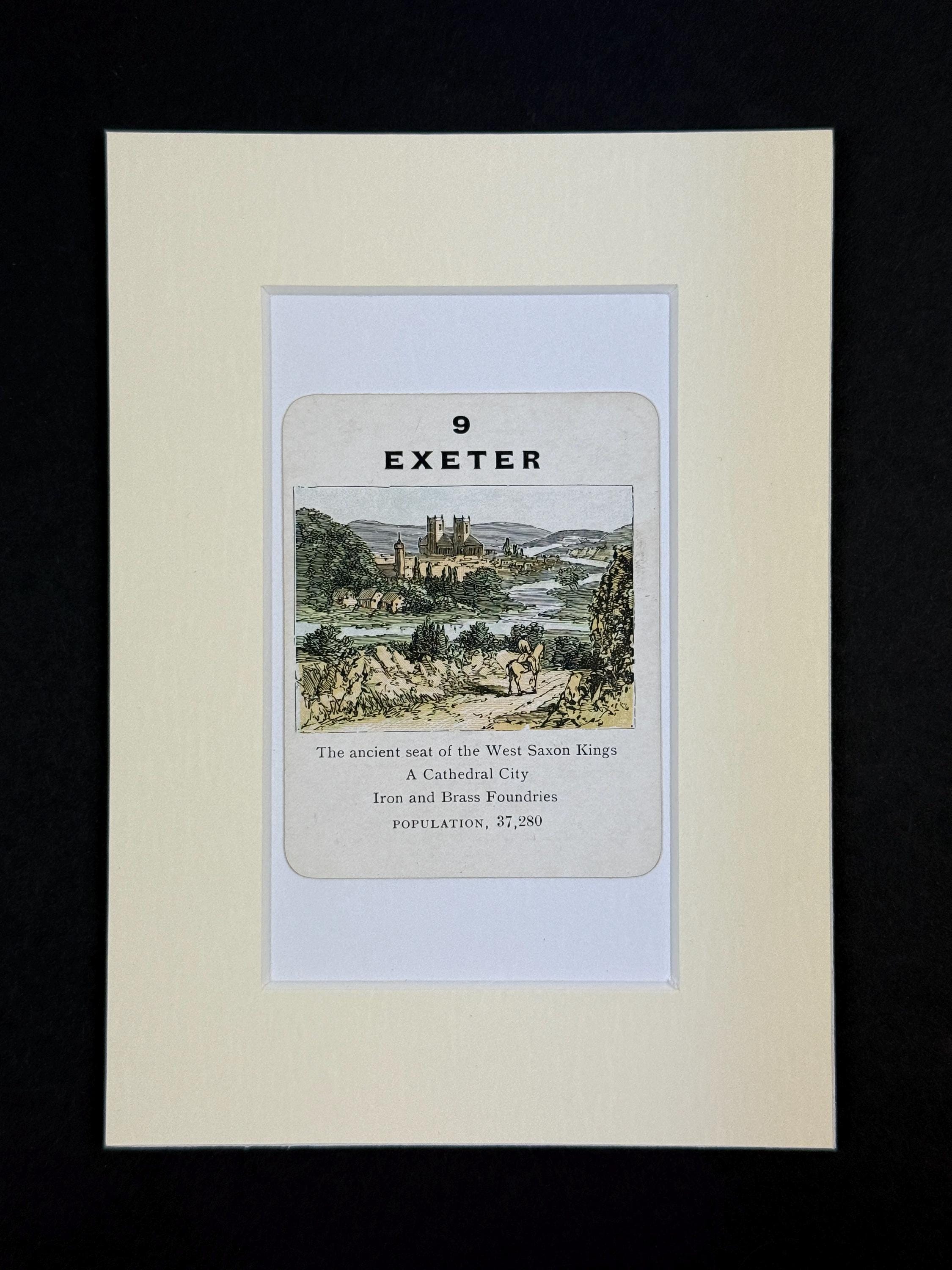 Original vintage Counties of England Playing Card - mounted and ready to frame (frame not supplied but comes packaged in a protective cello bag). Ivory mount measures 7x5 inches.
