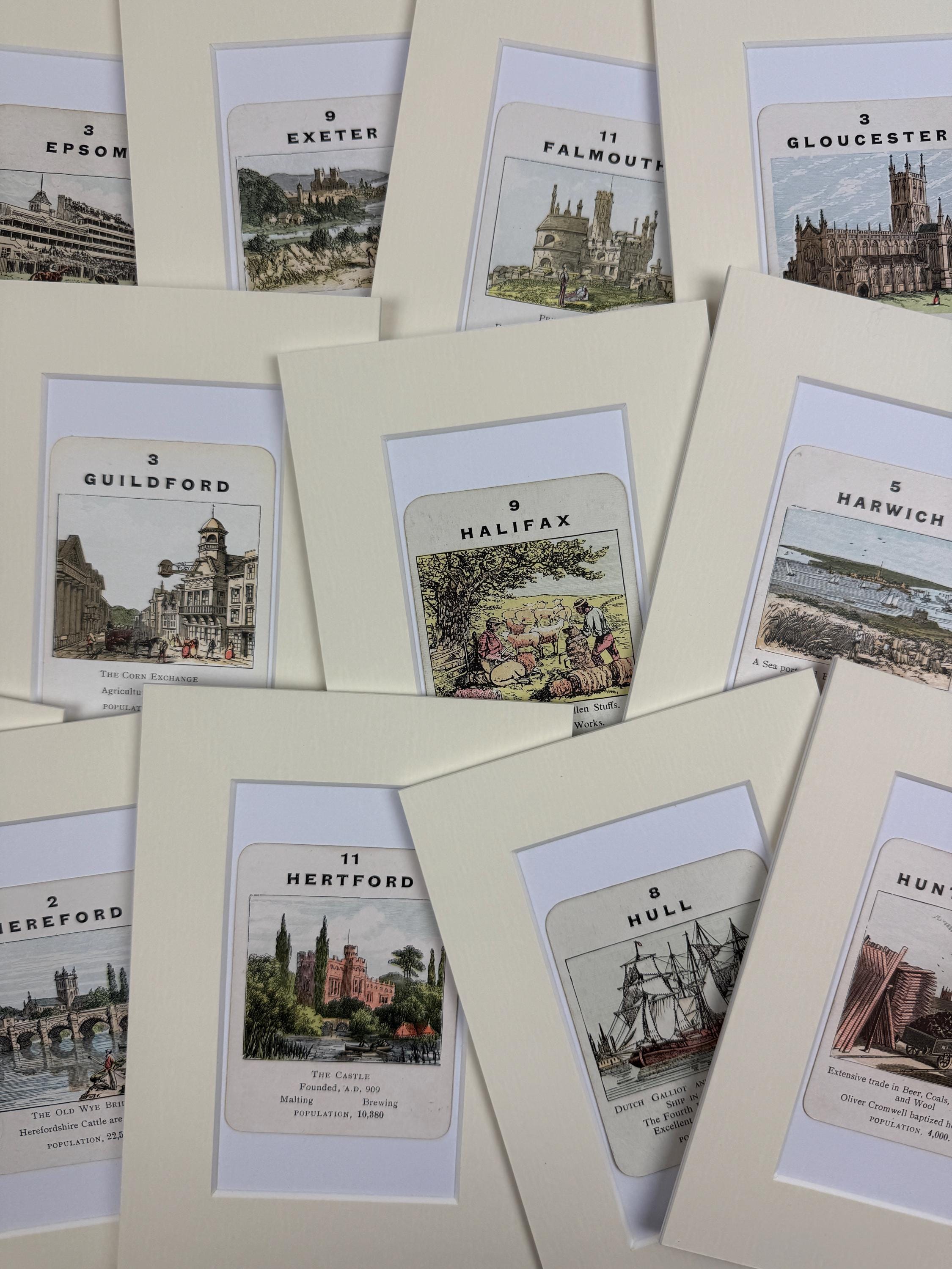 Although the card game is called 'Counties of England' the cards are actually key towns and cities from each county. Places starting with E-H are available in the drop down menu - see our Etsy Shop for additional places.