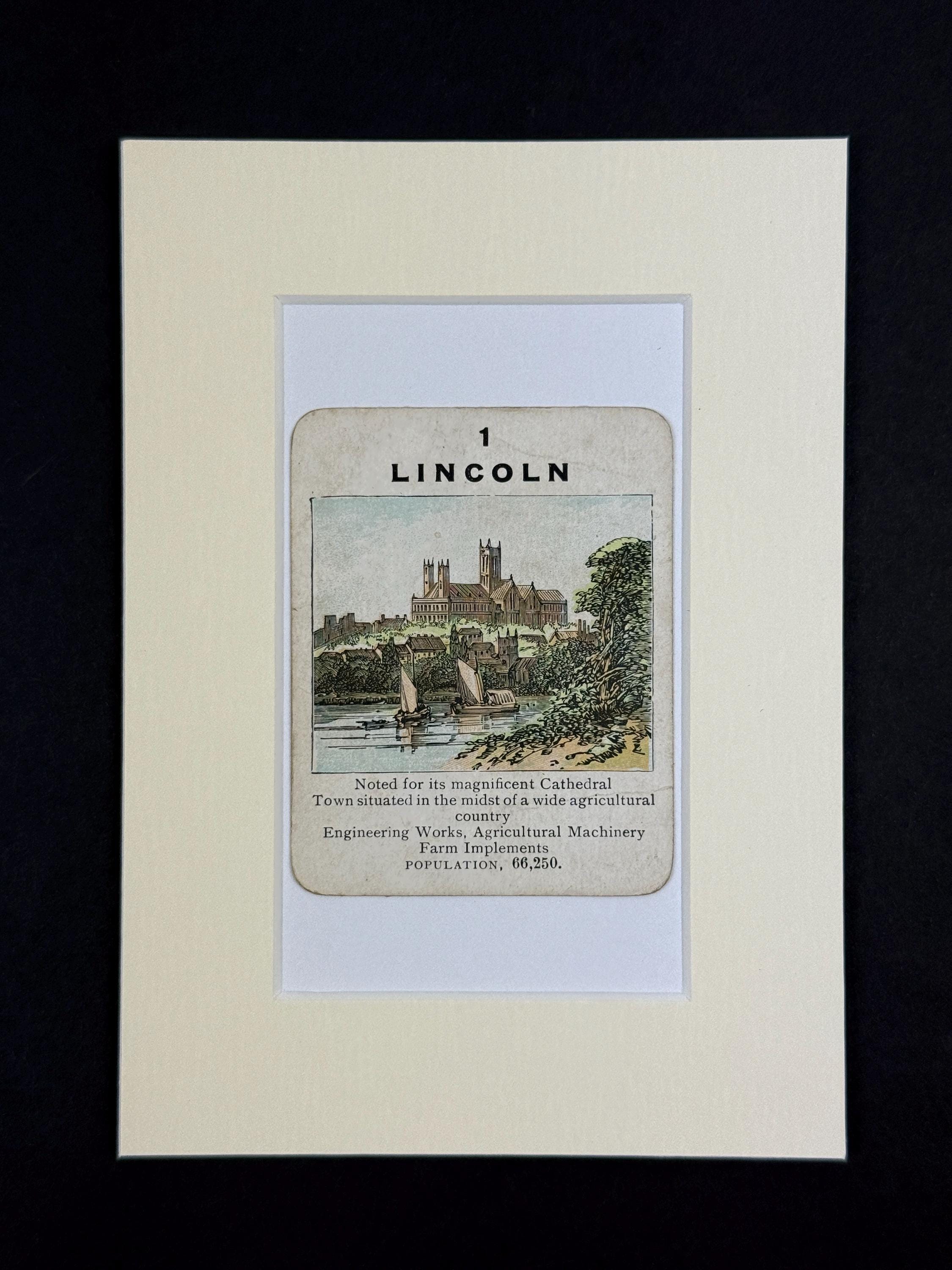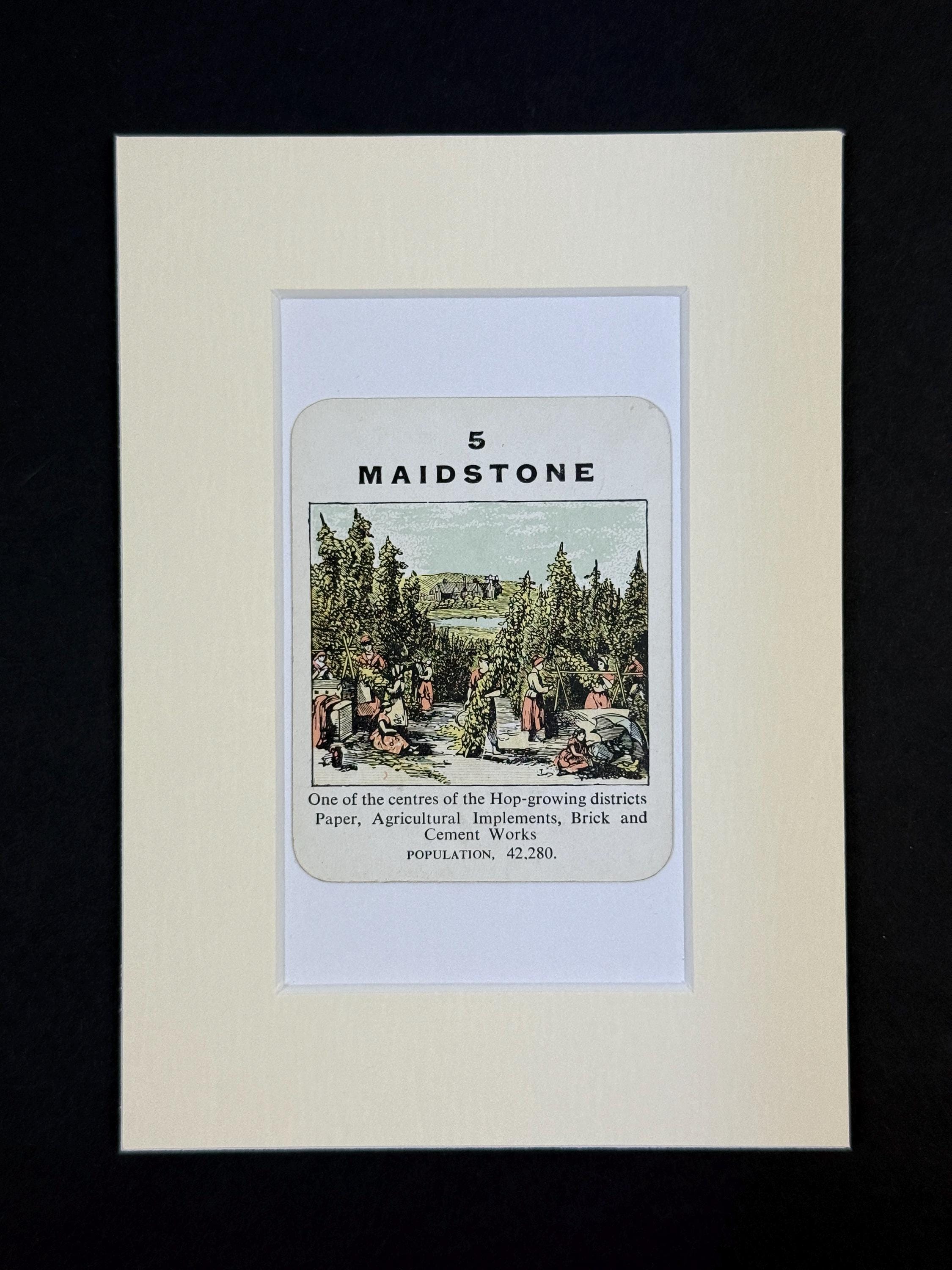 Original vintage Counties of England Playing Card - mounted and ready to frame (frame not supplied but comes packaged in a protective cello bag). Ivory mount measures 7x5 inches.
