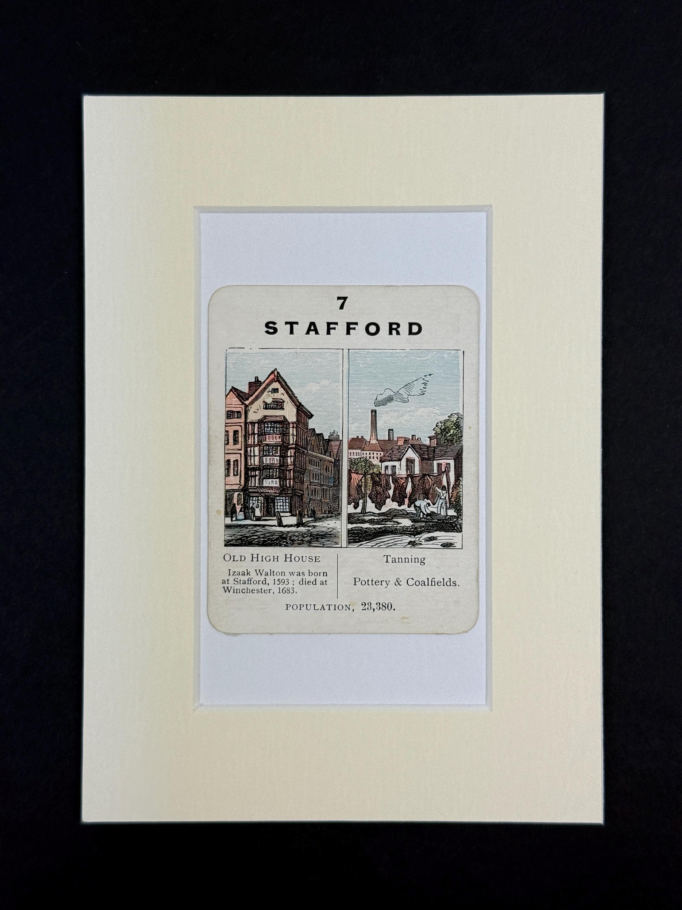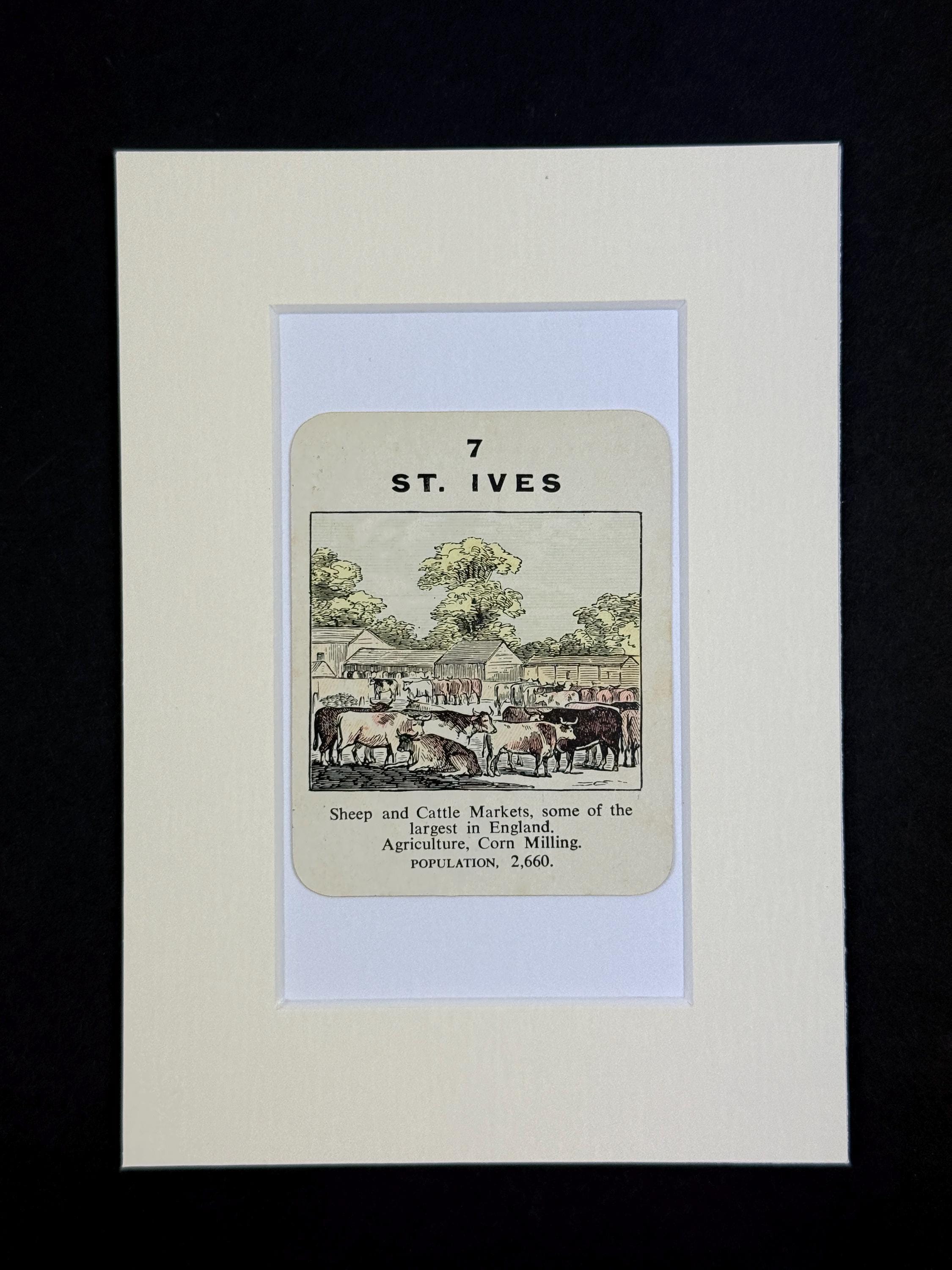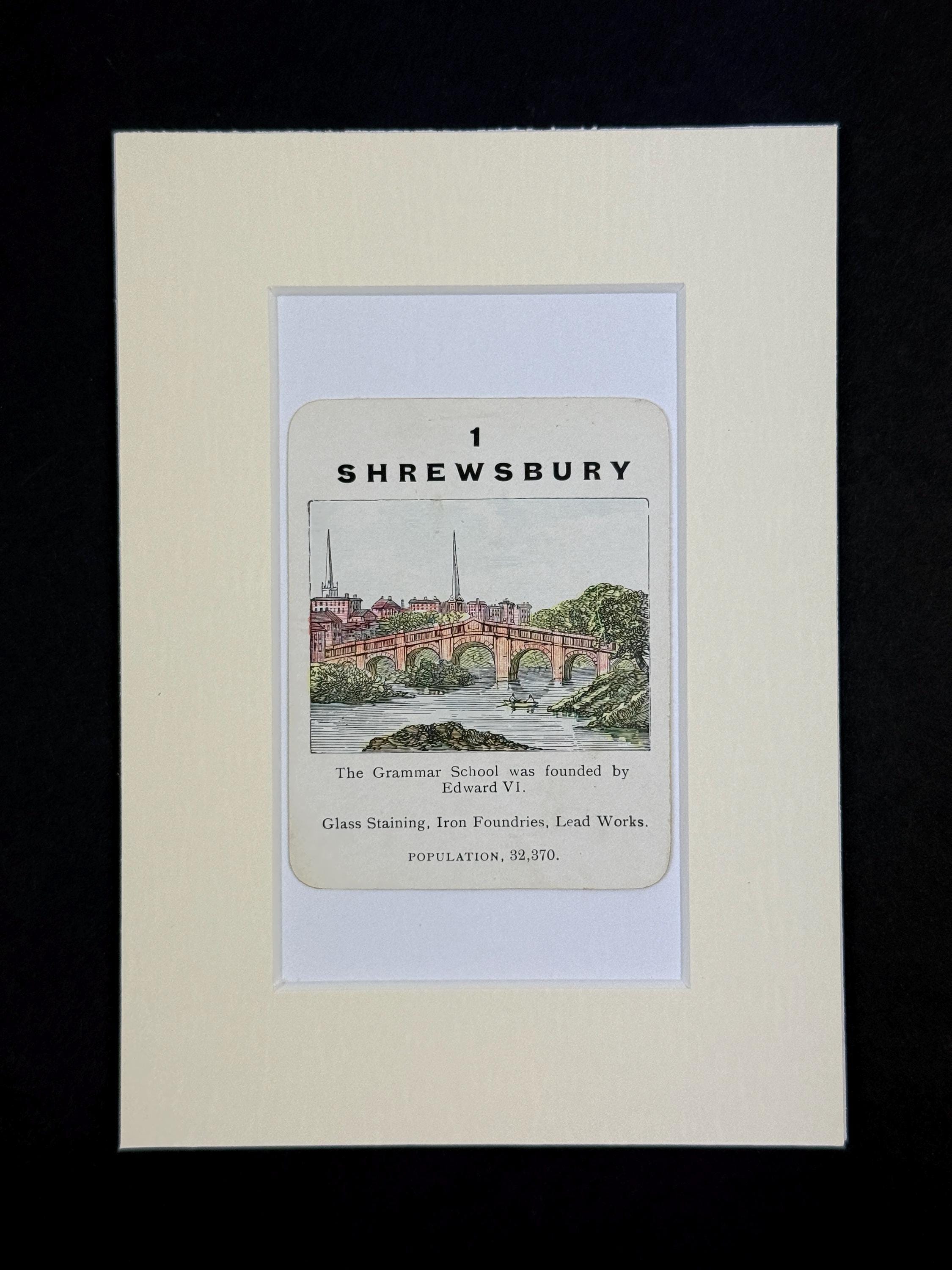 Original vintage Counties of England Playing Card - mounted and ready to frame (frame not supplied but comes packaged in a protective cello bag). Ivory mount measures 7x5 inches.