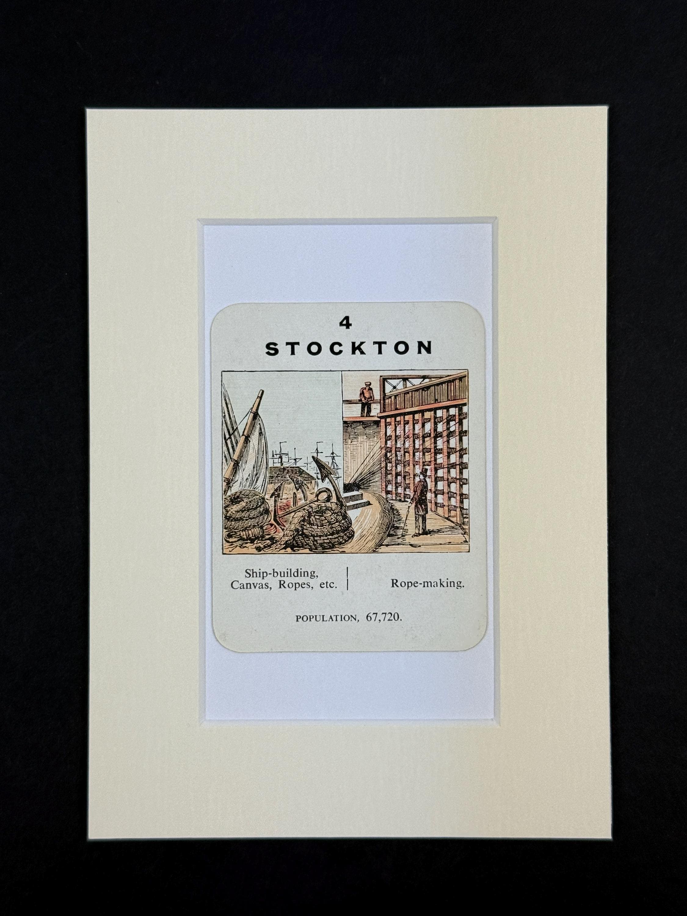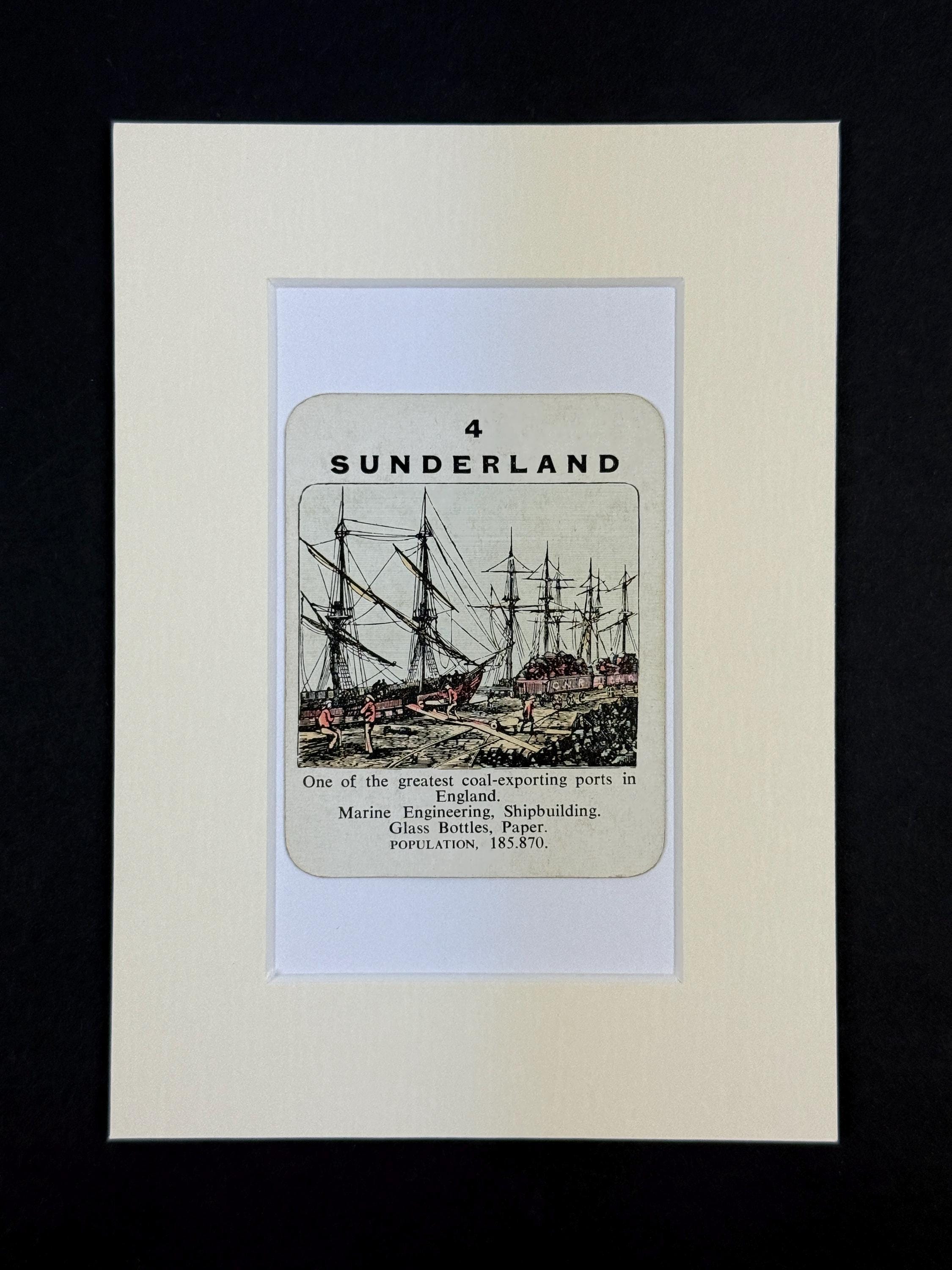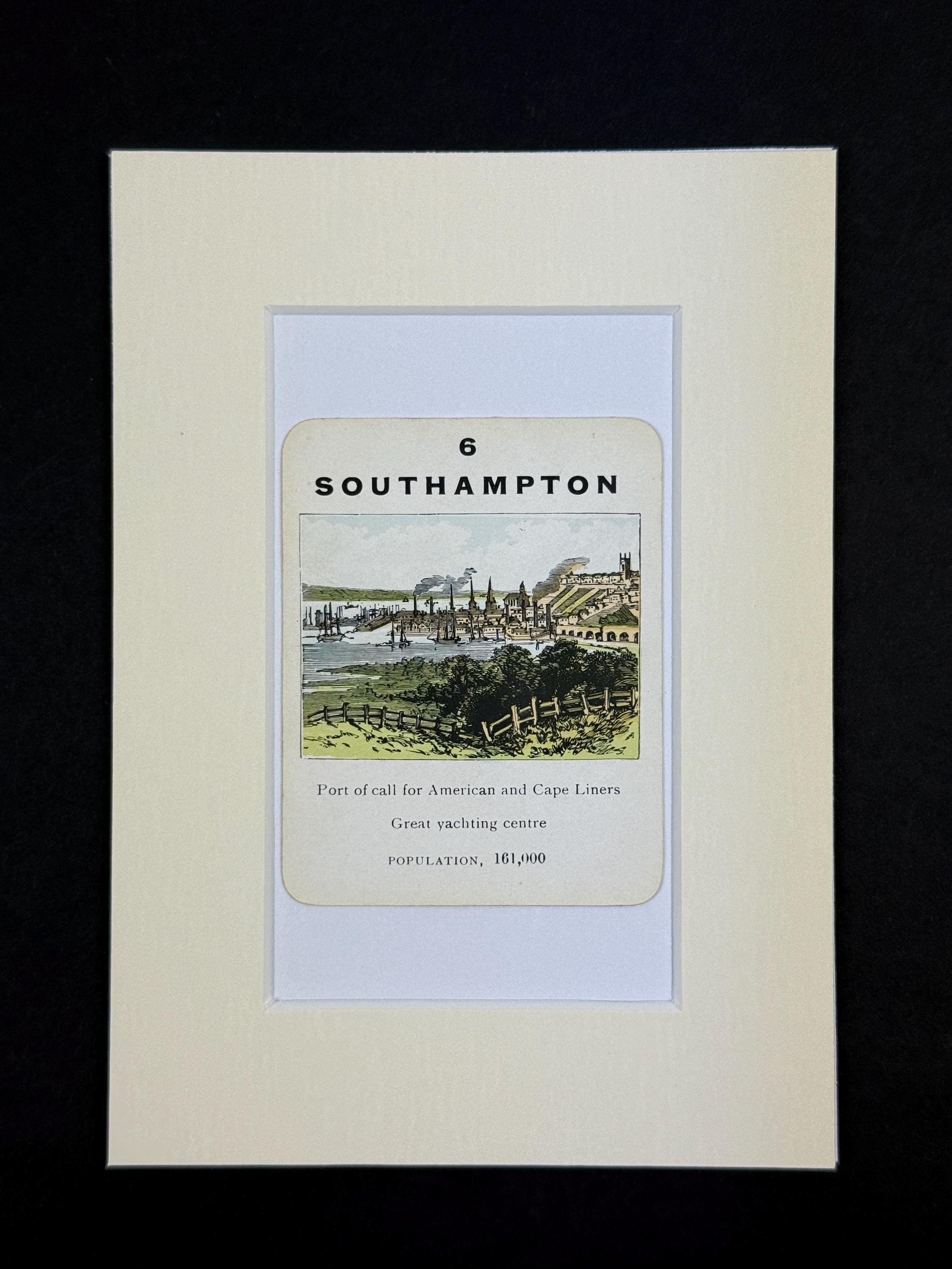 Original vintage Counties of England Playing Card - mounted and ready to frame (frame not supplied but comes packaged in a protective cello bag). Ivory mount measures 7x5 inches.