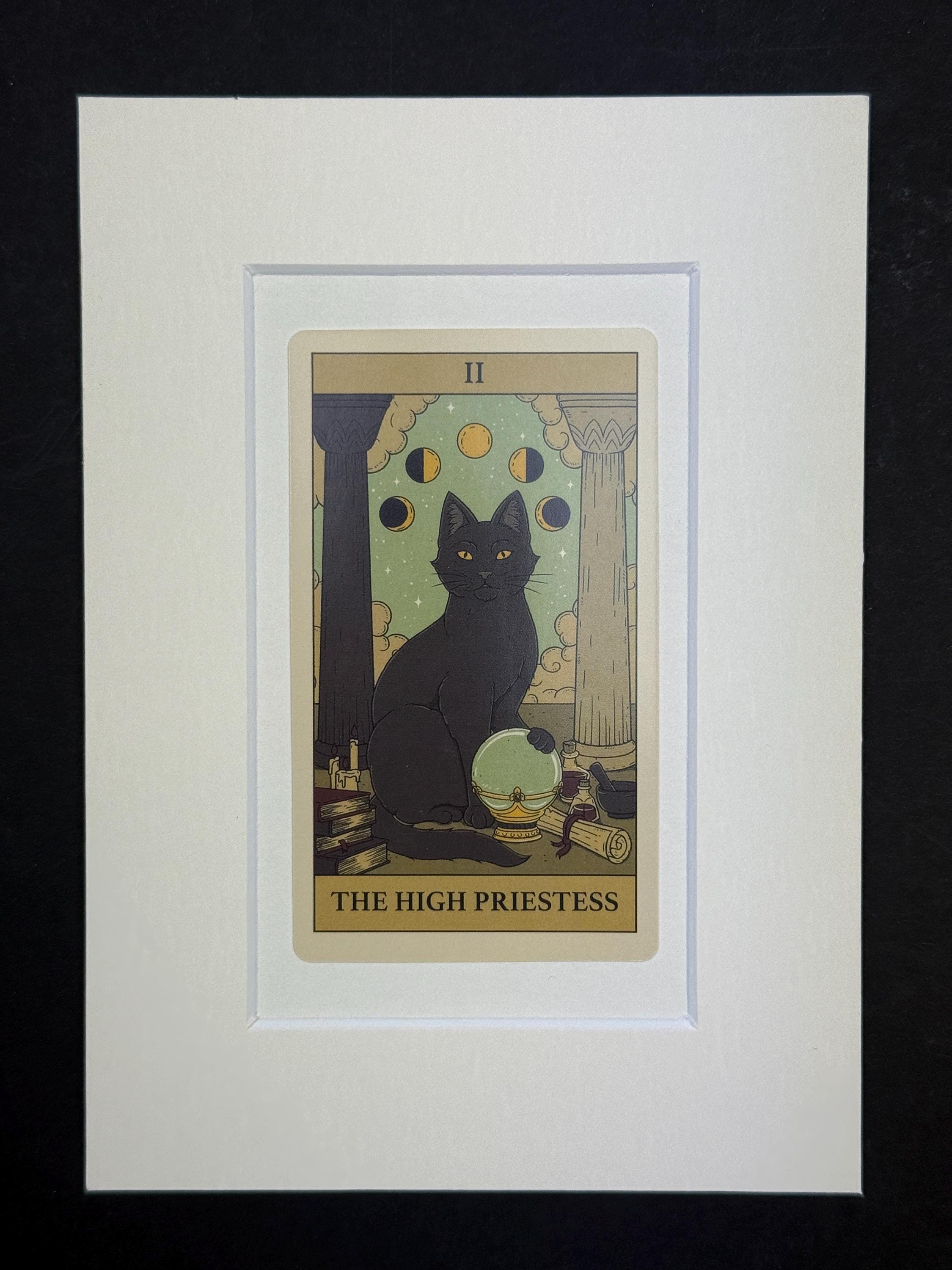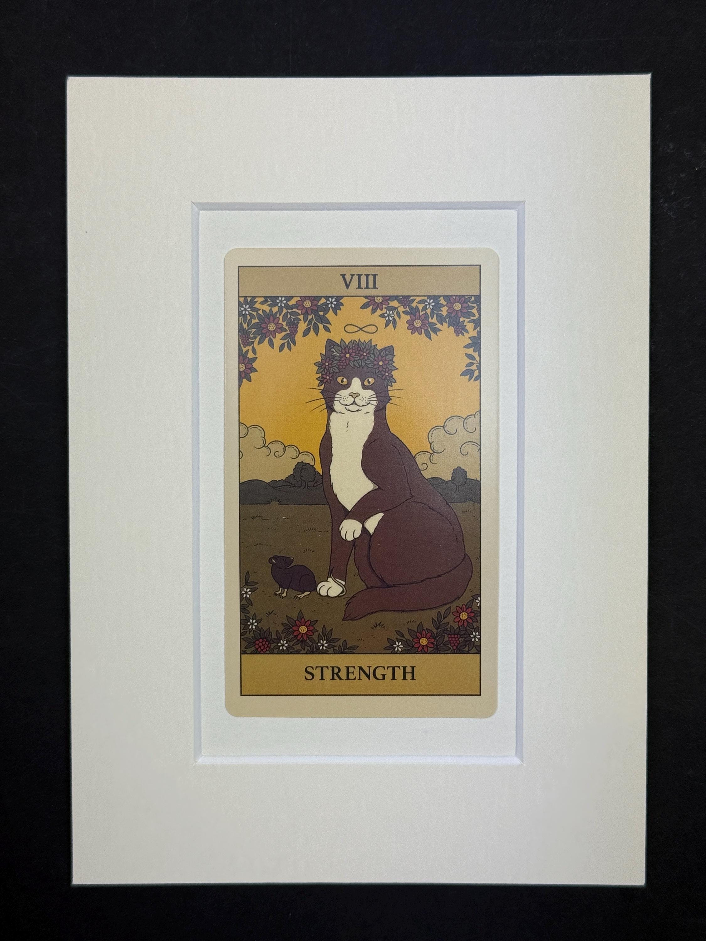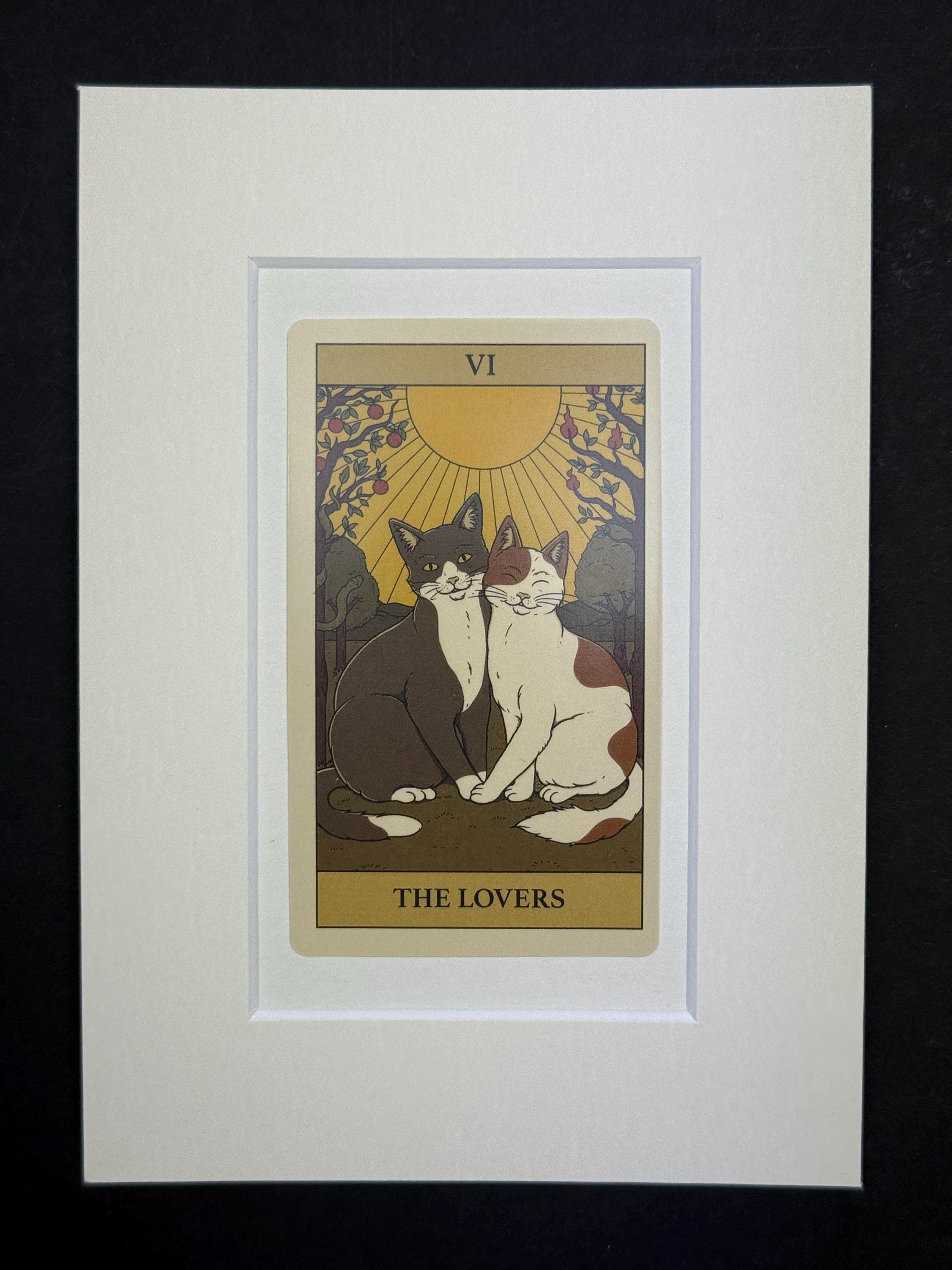 Original Cat Tarot Cards - mounted and ready to frame (frame not supplied but comes packaged in a protective cello bag). Ivory mount, measures 7x5 inches. Variety of cards from The High Priestess to The Lovers and more, available in the drop down menu. See our store for other tarot cards.