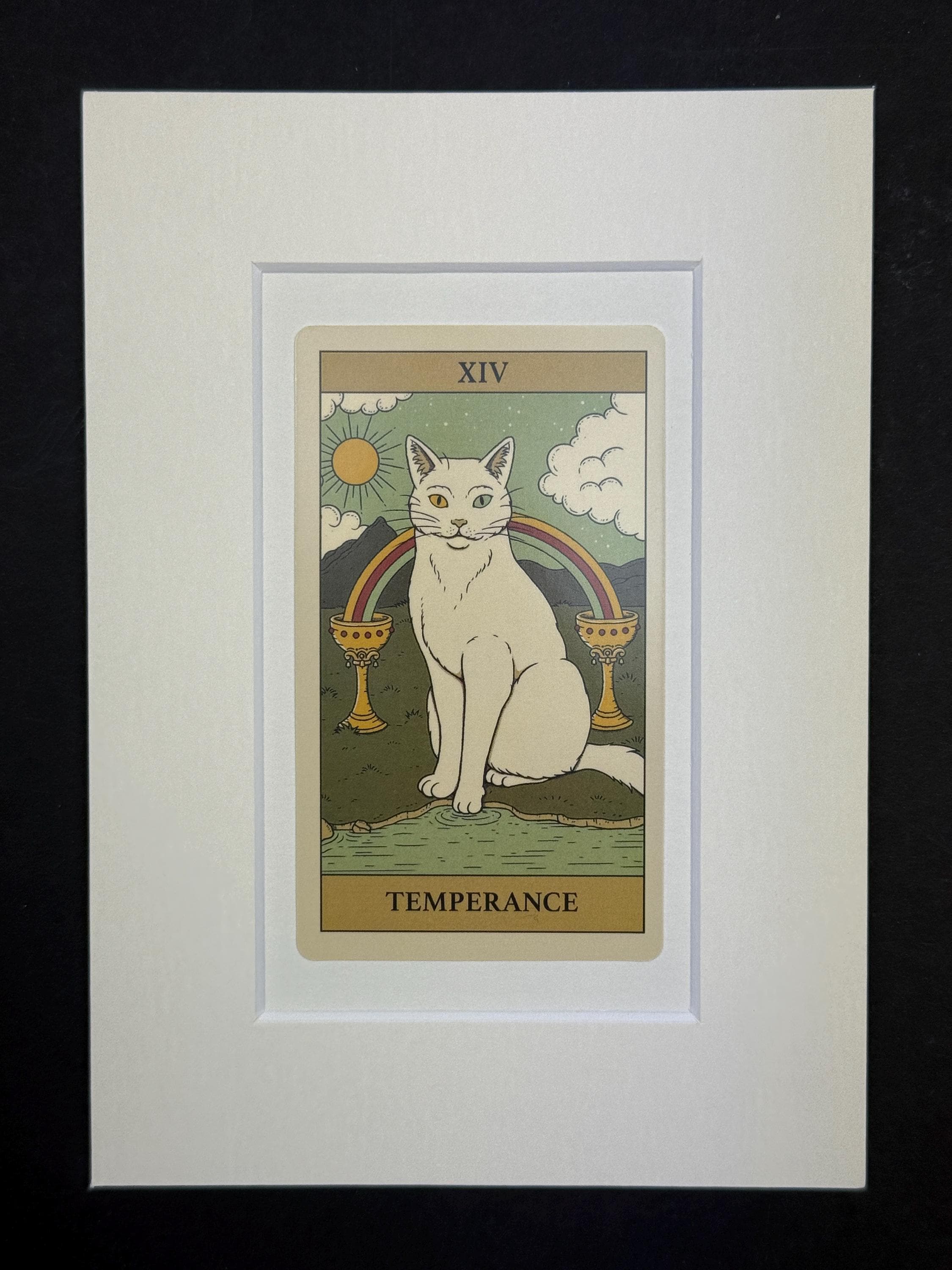 Original Cat Tarot Cards - mounted and ready to frame (frame not supplied but comes packaged in a protective cello bag). Ivory mount, measures 7x5 inches. Variety of cards from Temperance to The World and more, available in the drop down menu. See our store for other tarot cards.